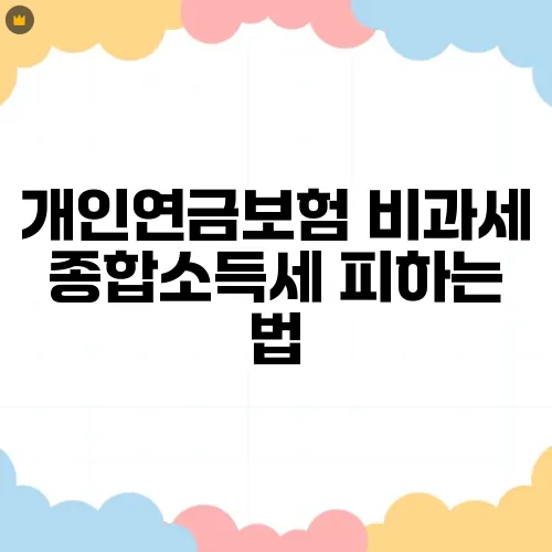 개인연금보험 비과세 종합소득세 피하는 법, 연금으로 세금도 줄이자!